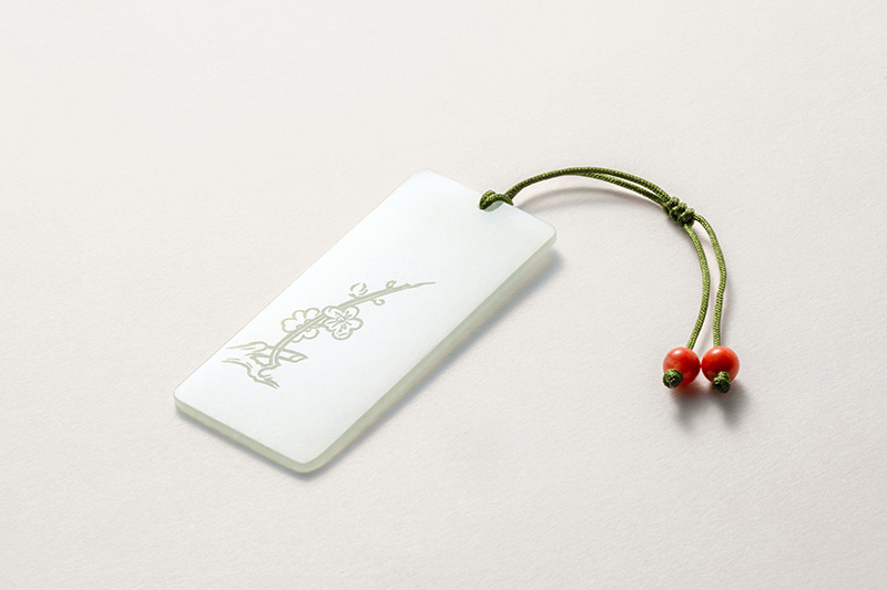 和田玉书签,甄选和田玉打造轻薄外观,雕刻颇具诗意的传统意象,风格简约,清新隽永。