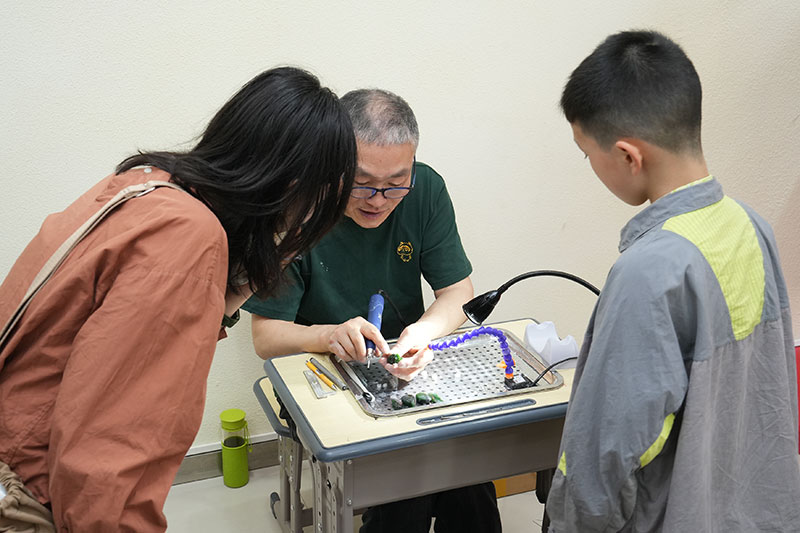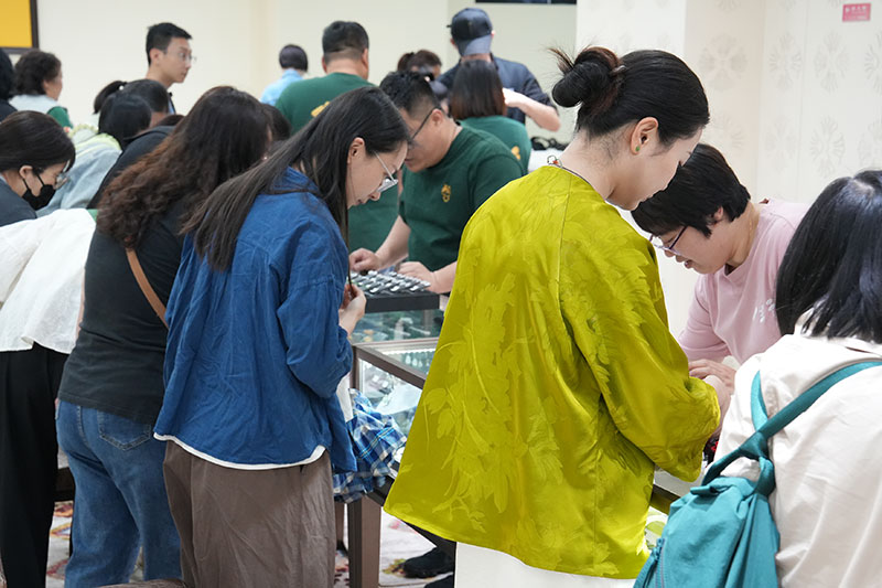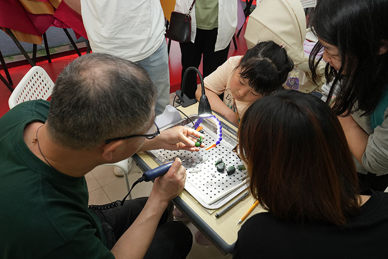 品牌方还从苏州玉雕厂调来了拥有30多年经验的玉雕师傅,现场展示苏州玉雕工艺,让大家近距离感受非遗魅力。当看到玉雕师傅吸引了很多小朋友的围观时,“鱼叔”非常欣慰,并说非遗传承就是要从小培养兴趣。